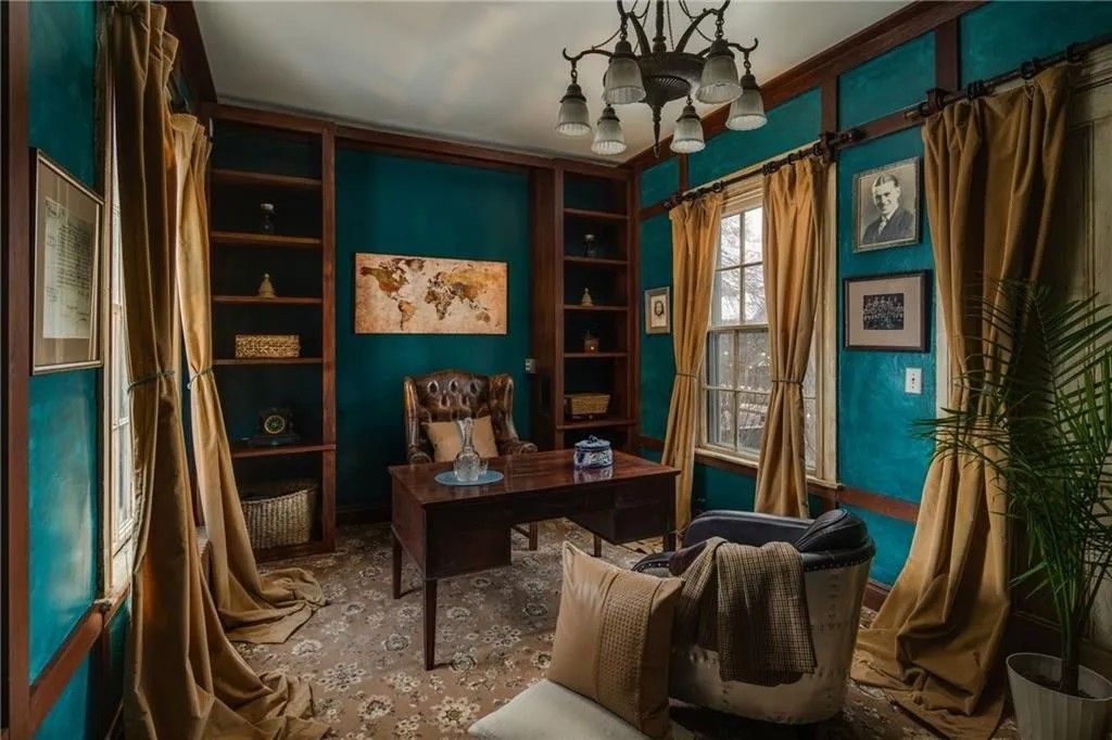 Дім особливий не лише кольором екстер'єру. Він є перлиною Золотої епохи та вміщує вісім спалень. Особняк розташований у престижному районі Топ-оф-зе-Хілл, звідки можна дійти до центру міста всього за кілька хвилин.