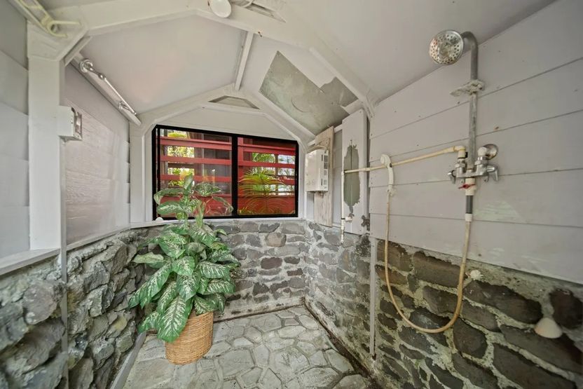 В інтер'єрі використали бамбукові меблі з Балі. І в справжньому гавайському стилі є окрема душова кабіна з лавового каменю для купання. Поруч з будинком є печера, окрасою якої є природно утворені сталагміти та сталактити.
