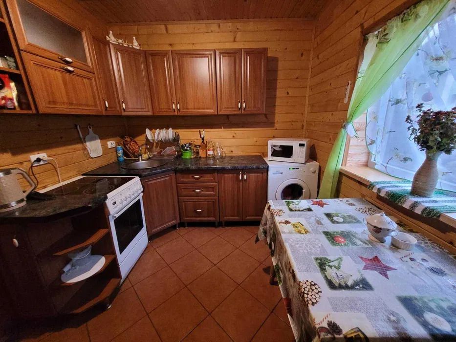 Котедж дерев'яний як зовні, так і всередині, з простим інтер'єром. Разом із помешканням можна придбати ще два котеджі, які розташовані поруч і разом утворюють комплекс.