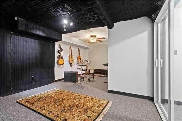 На нижньому підземному рівні є простора вітальня з баром, оновлена кухня, а також музична студія з обладнанням для звукозапису, домашній тренажерний зал і навіть театральна кімната з більярдним столом.
