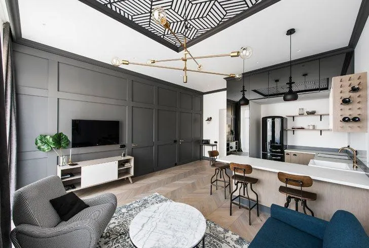 У суспільстві існує стереотип, що в шикарному інтер'єрі має бути позолота, натуральне дерево, мармур, камінь та ін. Однак важливо розуміти, що ці атрибути доречні далеко не в кожній оселі. Придивіться до простих матеріалів. Наприклад, ламінат – у наш час сучасні технології дозволяють робити його на будь-який колір і смак.
