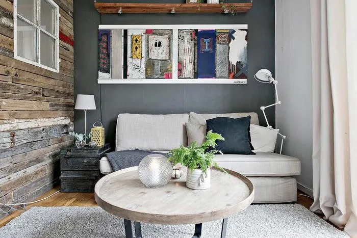 - Природні матеріали – ще одна ознака стилю. Якщо йдеться про оздоблення та оформлення, це – дерево, потертий метал, камінь. Текстиль з дрібної рогожки, шерсті, в'язані речі.