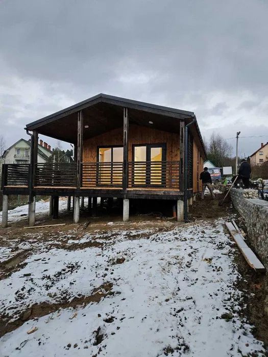 У вартість входить будинок, монтаж, внутрішнє оздоблення, розведена електрика і сантехніка.