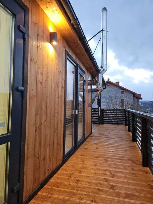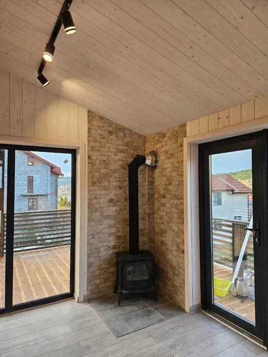 У карпатському селі Тухля здають в довгострокову оренду окремий будинок із сучасним ремонтом. У будинку є дві спальні, кухня-студія, ванна кімната й простора тераса з обідньою зоною. Площа житла становить 60 квадратів.