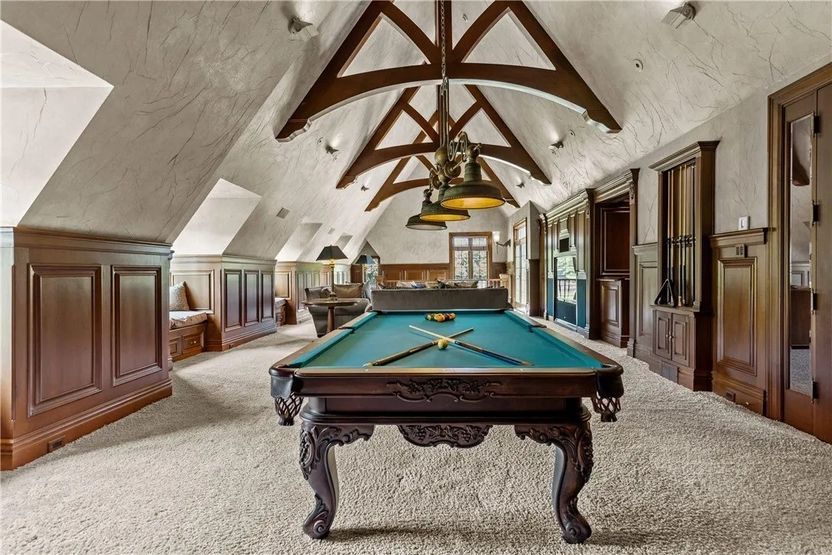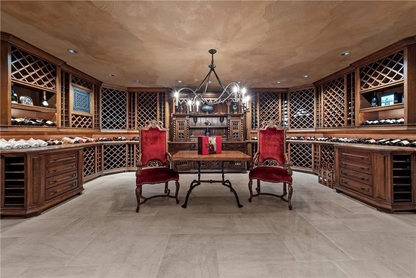 Крім шести спалень і кухні, у будинку є чудова кімната з 8-метровою стелею, більярдна, кінотеатр і навіть танцювальний майданчик. На нижньому рівні облаштований льох, де є 2000 пляшок вина.