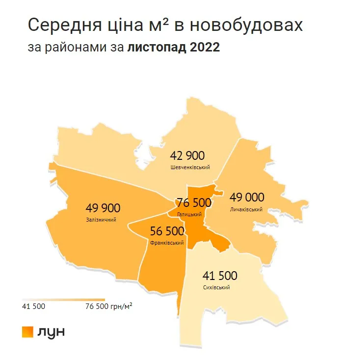 Ціни у львівських новобудовах за районами / Інфографіка ЛУН