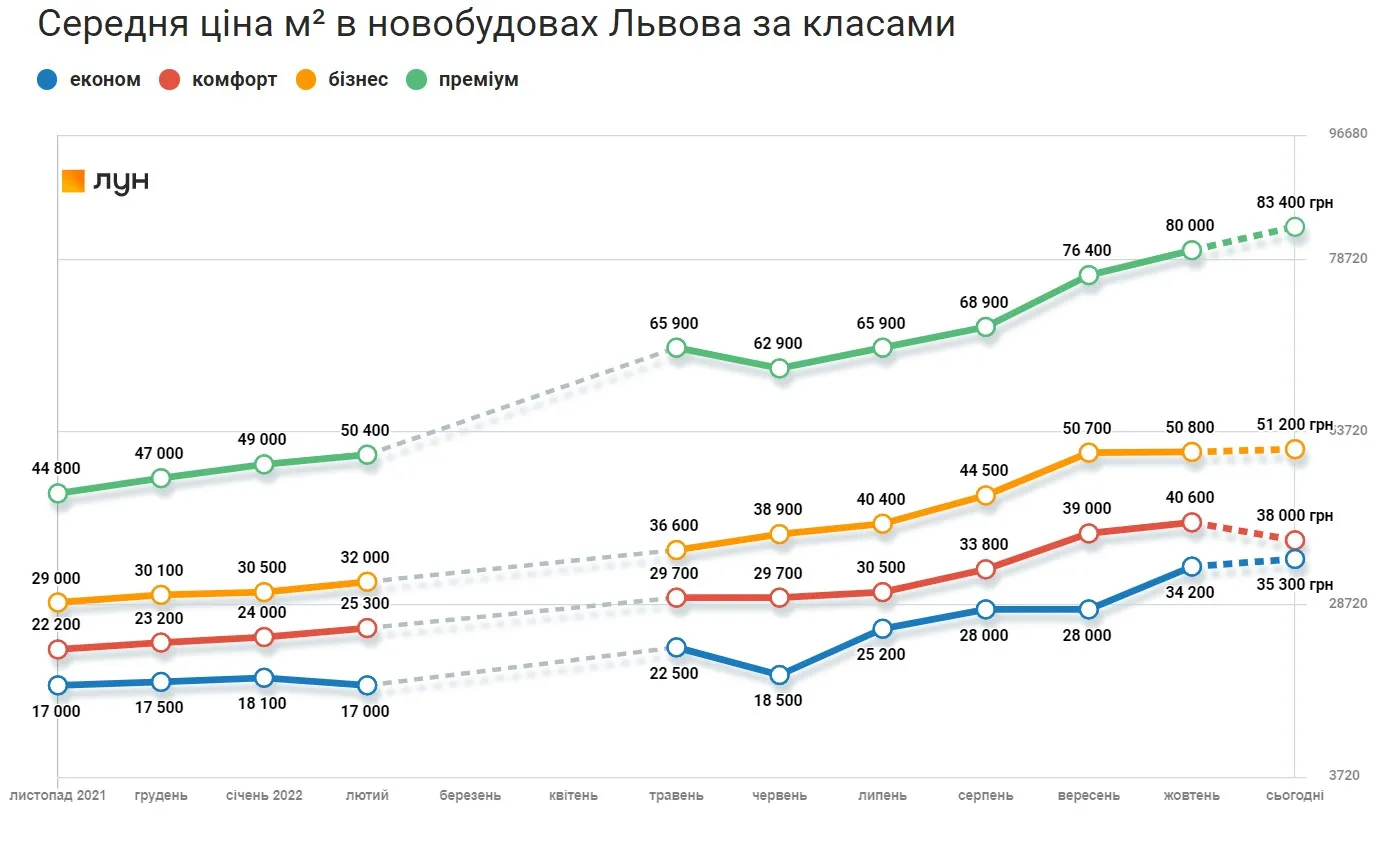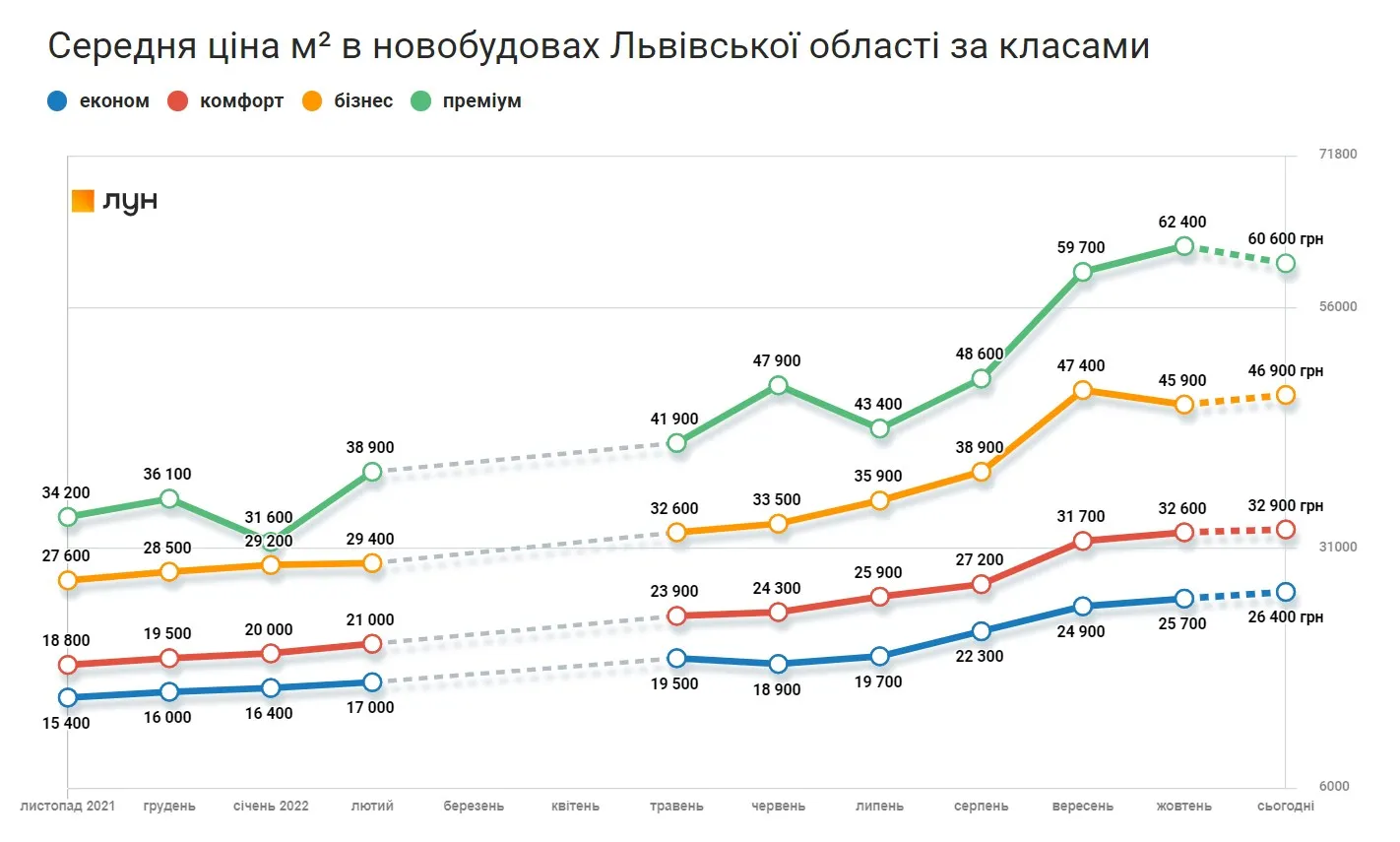 Ціни у новобудовах Львівської області за класами житла / Інфографіка ЛУН