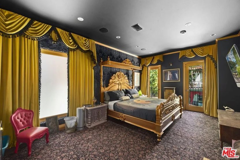 Який марокканський особняк був би досконалим без розкішного основного люкса? Спальня там справді особлива: золоті оксамитові драпірування з чорними китицями, стіни кольору оніксу та золоте ліжко розміру king-size. Також у кімнаті є подвійні гардеробні та ванна кімната.