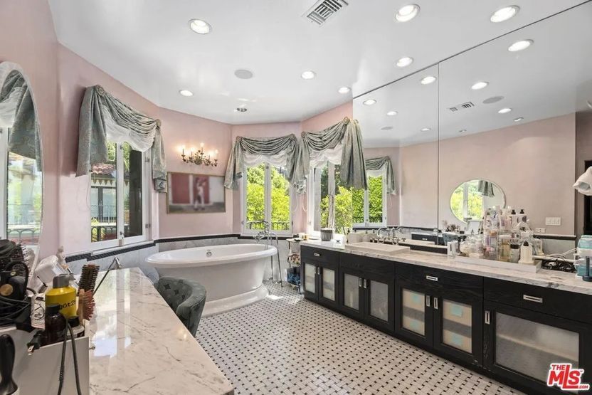 На задньому є басейн з підігрівом, спа-центр і навіть вітальня з каміном просто неба. З пагорба видно неймовірні краєвиди на Лос-Анджелес та околиці.