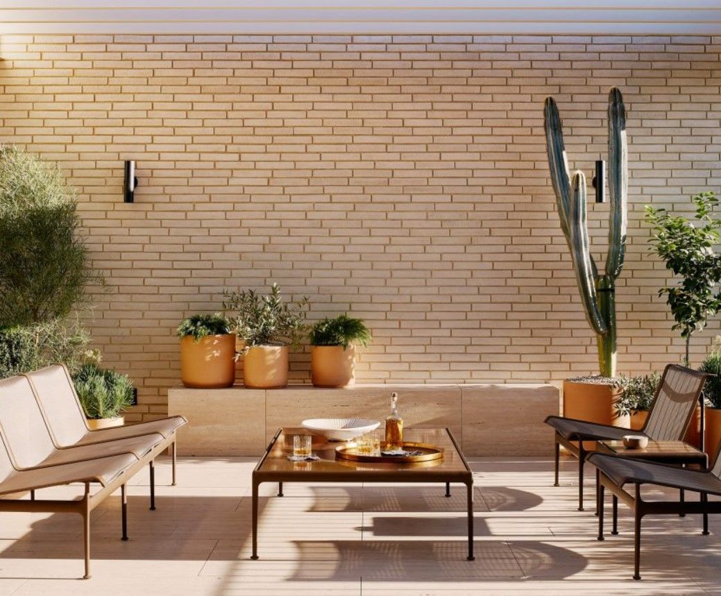 Важными элементами жилья стали мозаичная каменная стена и место для картин владельцев.