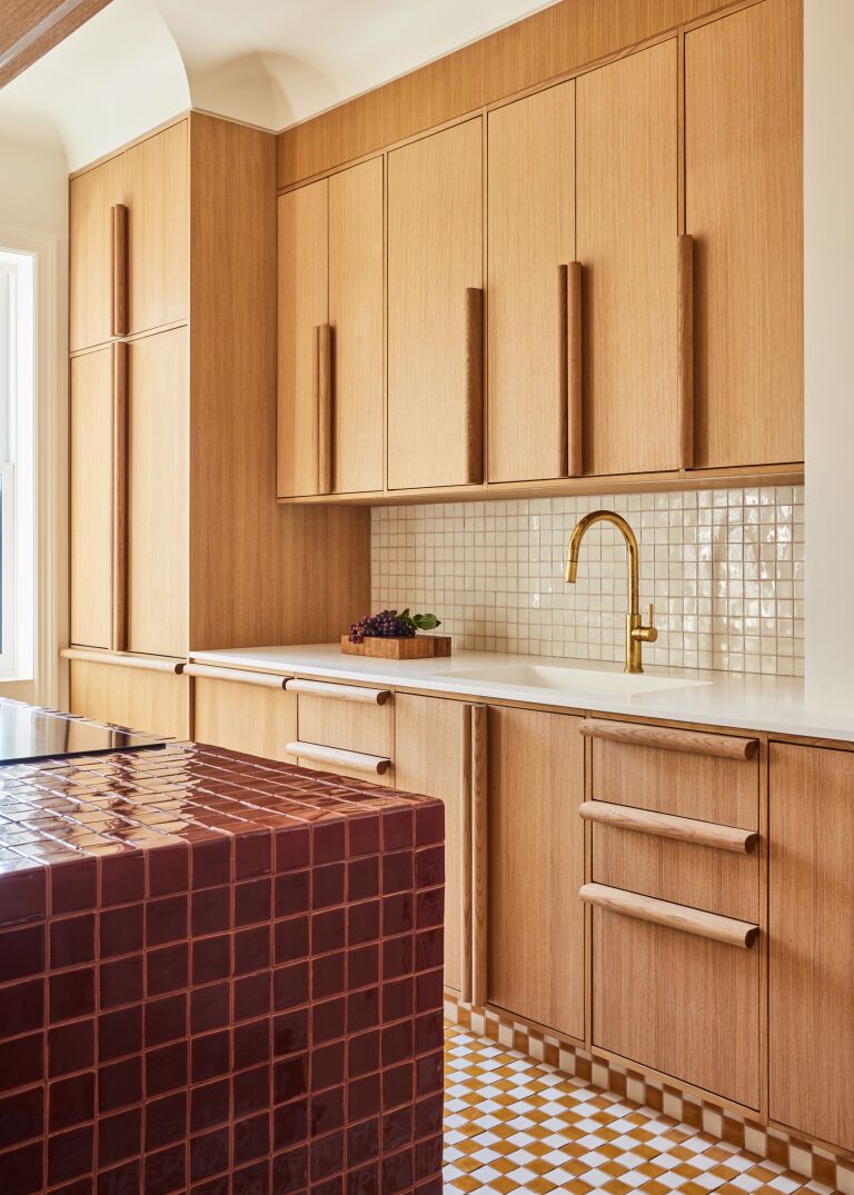 Теплые тона, дубовое дерево и блестящая керамическая плитка создали в этой нью-йоркской квартире уютную атмосферу.