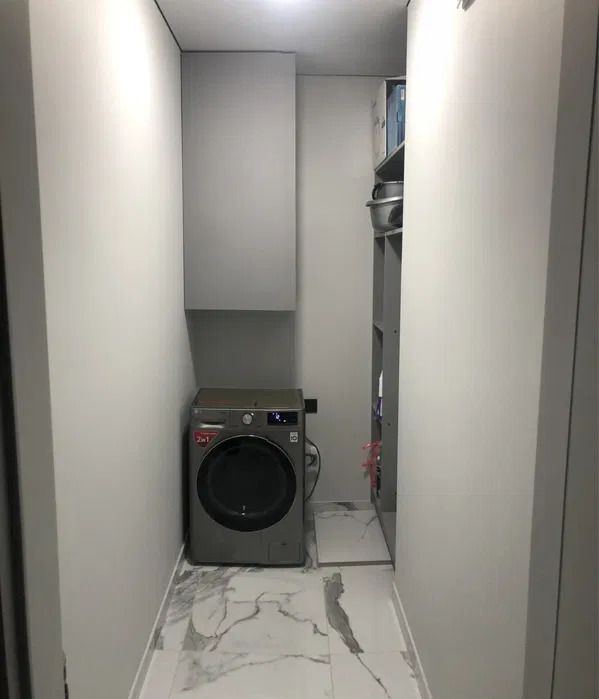 Квартиру сдают меблированной, посудомоечной, стиральной и сушильной машинками. Тип отопления – индивидуальное газовое.