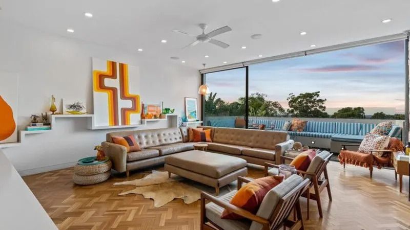 Открытая кухня, гостиная и столовая расположены на одном этаже, имеющем выход на балкон. На нижнем этаже есть три дополнительные спальни, общая ванная комната, прачечная и гостиная, которая выходит на веранду.