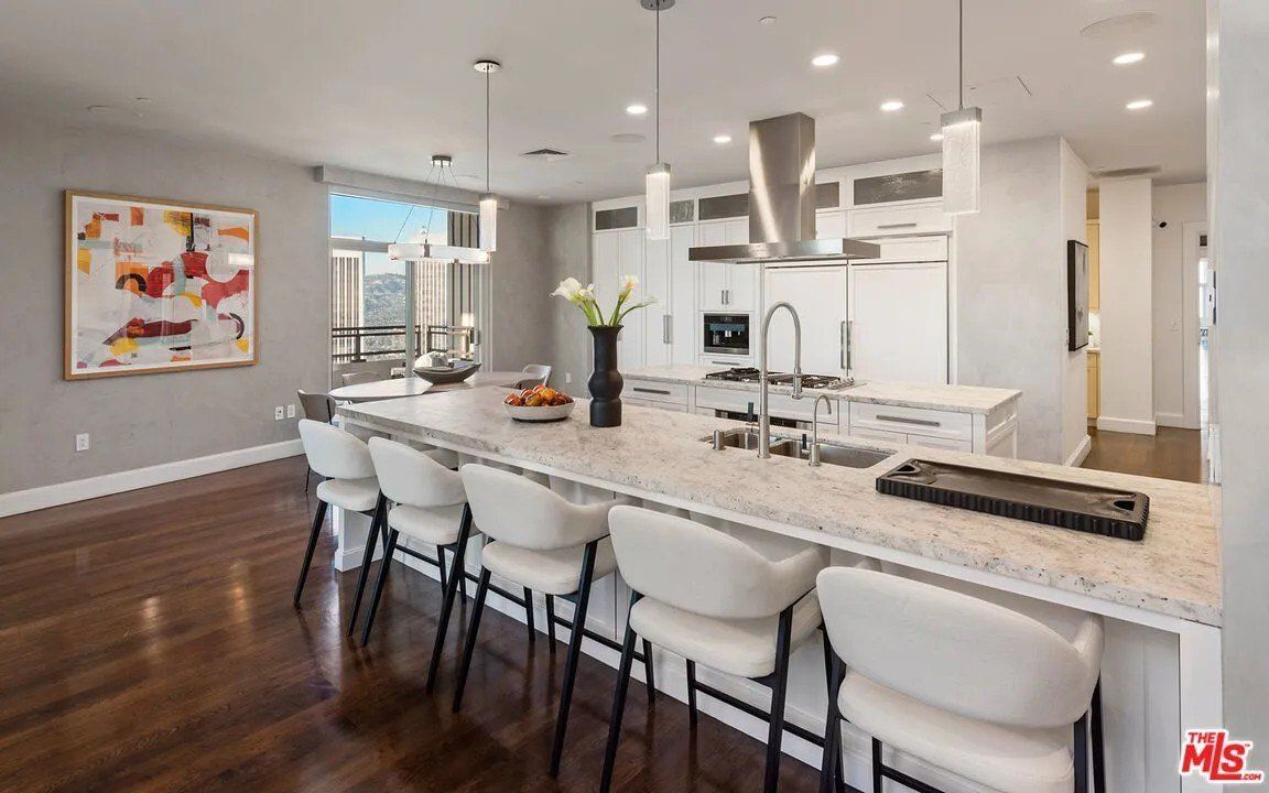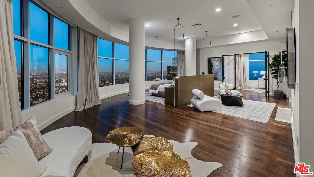 Шикарное жилье охватывает весь сороковой этаж 42-уровневой башни, известной как The Century. Пентхаус необычайно просторный и имеет потрясающие виды на центр Лос-Анджелеса, океан и горы.
