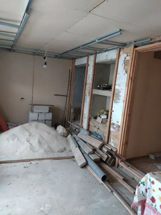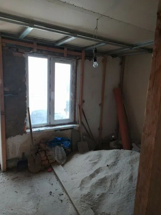 Дом из кирпича, на крыше – шифер. С фото сразу становится понятно, что в доме никто не живет. Оно требует капитального ремонта. На некоторых фотографиях видно строительные материалы. Очевидно, кто-то из владельцев начинал ремонт, но работы остановились.