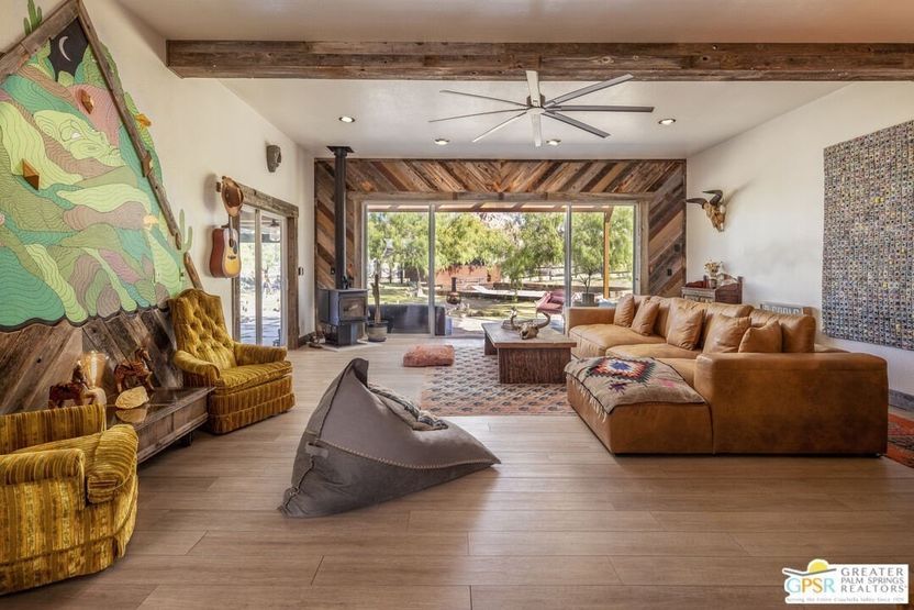 Дом имеет площадь 260 квадратных метров и включает четыре спальни и две ванные комнаты. Внутри можно почувствовать "богемную калифорнийскую деревенскую атмосферу", которую создают винтажные предметы и необычный декор.