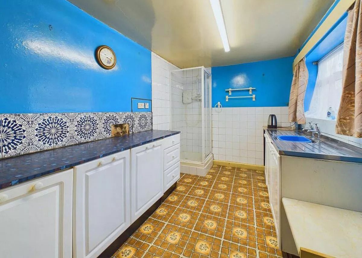 Дизайн интерьера немного устаревший – напоминает стиль 1960-70-х годов. Однако на декор никто не обращает внимания, потому что на кухне есть одна деталь, которая затмевает все. В углу возле зоны приготовления пищи расположена душевая кабина. Такое дизайнерское решение вызвало оживленные обсуждения в интернете.