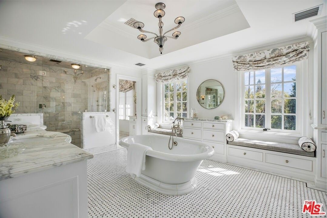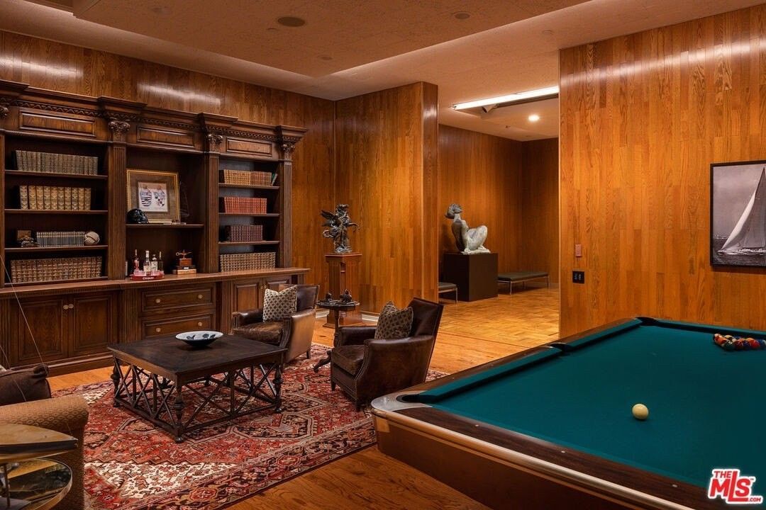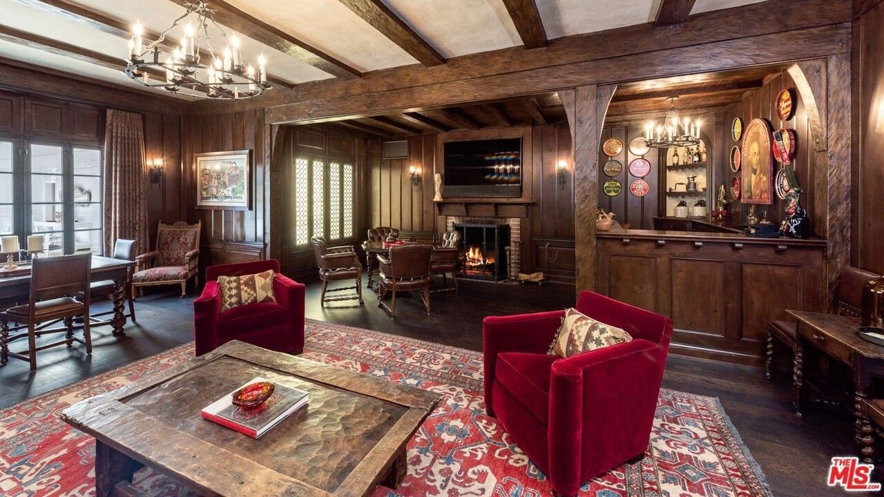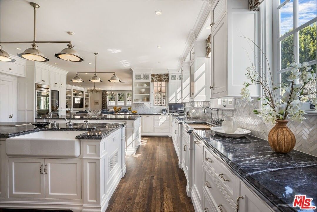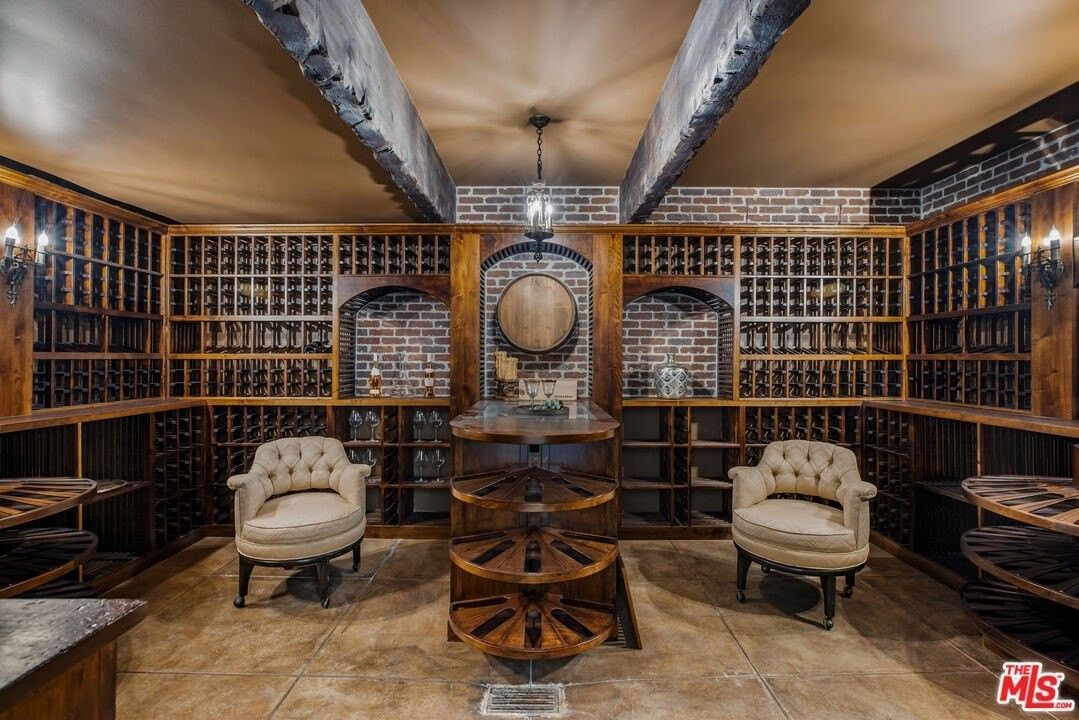 Имение расположено на 2,3 акра ландшафтного закрытого участка. Он включает в себя 7 спален и 21 ванную комнату, бар, домашний кинотеатр, кухню, несколько гостиных и обеденных зон и винный погреб. На дворе есть терраса и небольшой бассейн.