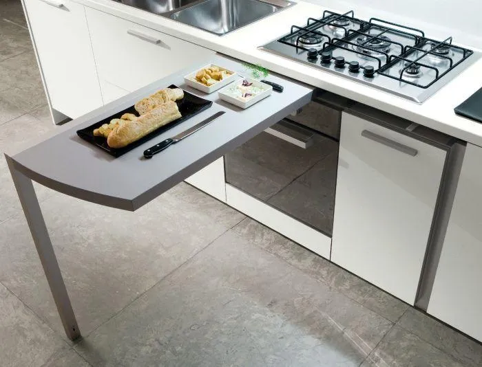 Выдвижной стол на кухне – прекрасный вариант для небольшого помещения.