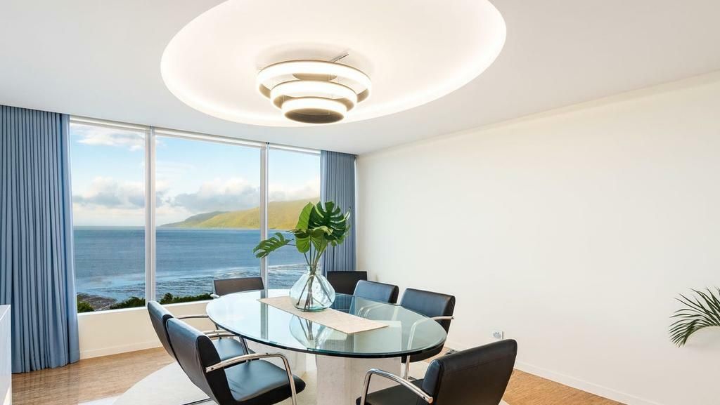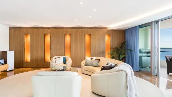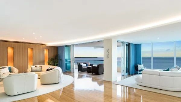 В гостиной, столовой и кухне установлены панорамные окна и качественный бамбуковый пол. По одну сторону пентхауса можно рассматривать великолепные виды на город, по другую – безграничный океан.