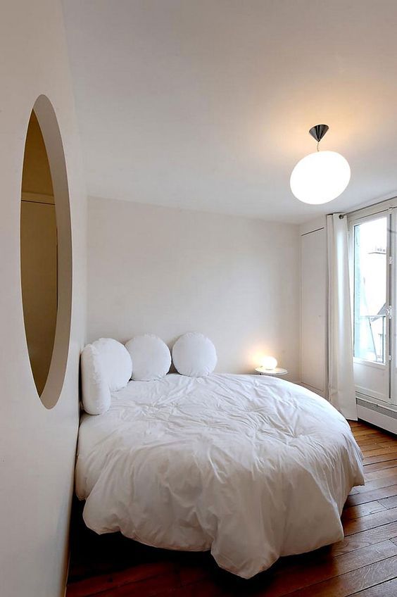 Такие кровати – отличный выбор для квартир с нетипичной планировкой и полукруглыми стенами. Используя их, удастся рационально использовать непрактичное пространство, что часто встречается в старых квартирах. Однако на этом преимущества круглой кровати завершаются.