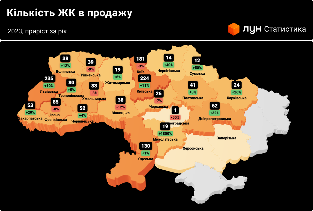 Этот аспект хорошо виден на конечной стоимости квадратного метра практически во всех городах Украины. Особенно прибавила в цене Харьковская область (+35% годовых). Также жилье подорожало в Кировоградской области (+26%). Тройку закрывает Хмельницкая область (+22%).