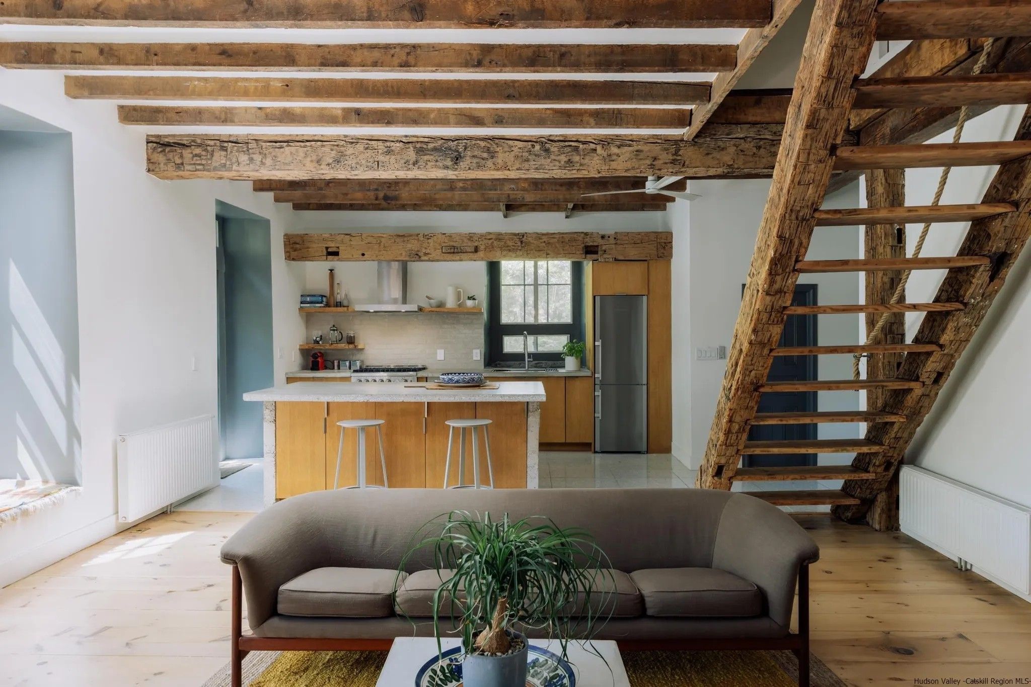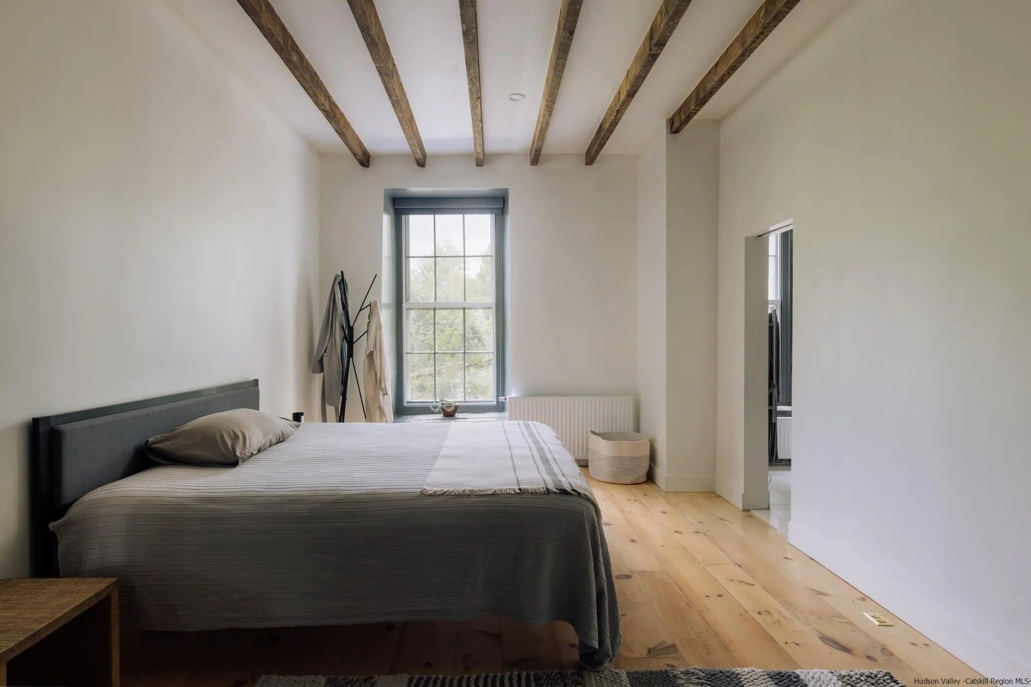 В доме есть четыре спальни, гостиная, кухня и еще несколько жилых помещений. С балкона "большой комнаты" можно любоваться рекой Уолкилл.
