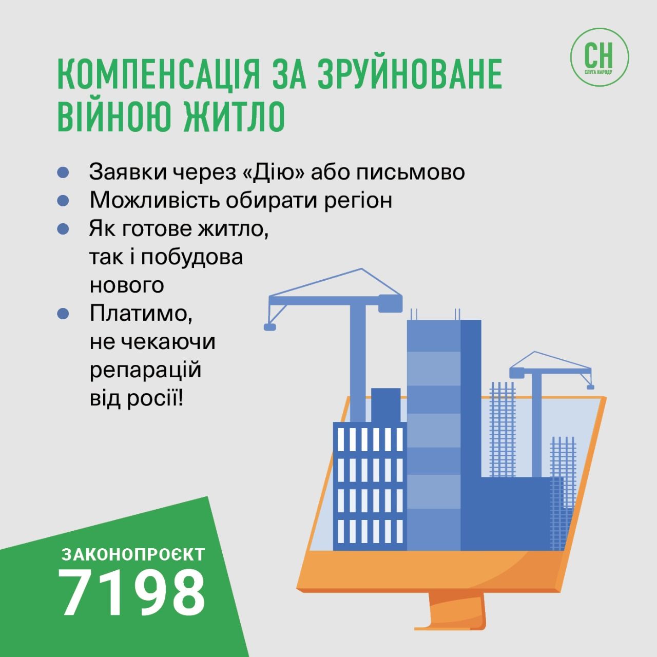 Верховная Рада приняла закон №7198, предусматривающий создание государственного реестра поврежденного и разрушенного войной имущества, а также порядок получения компенсации. За решение проголосовали 275 депутатов.