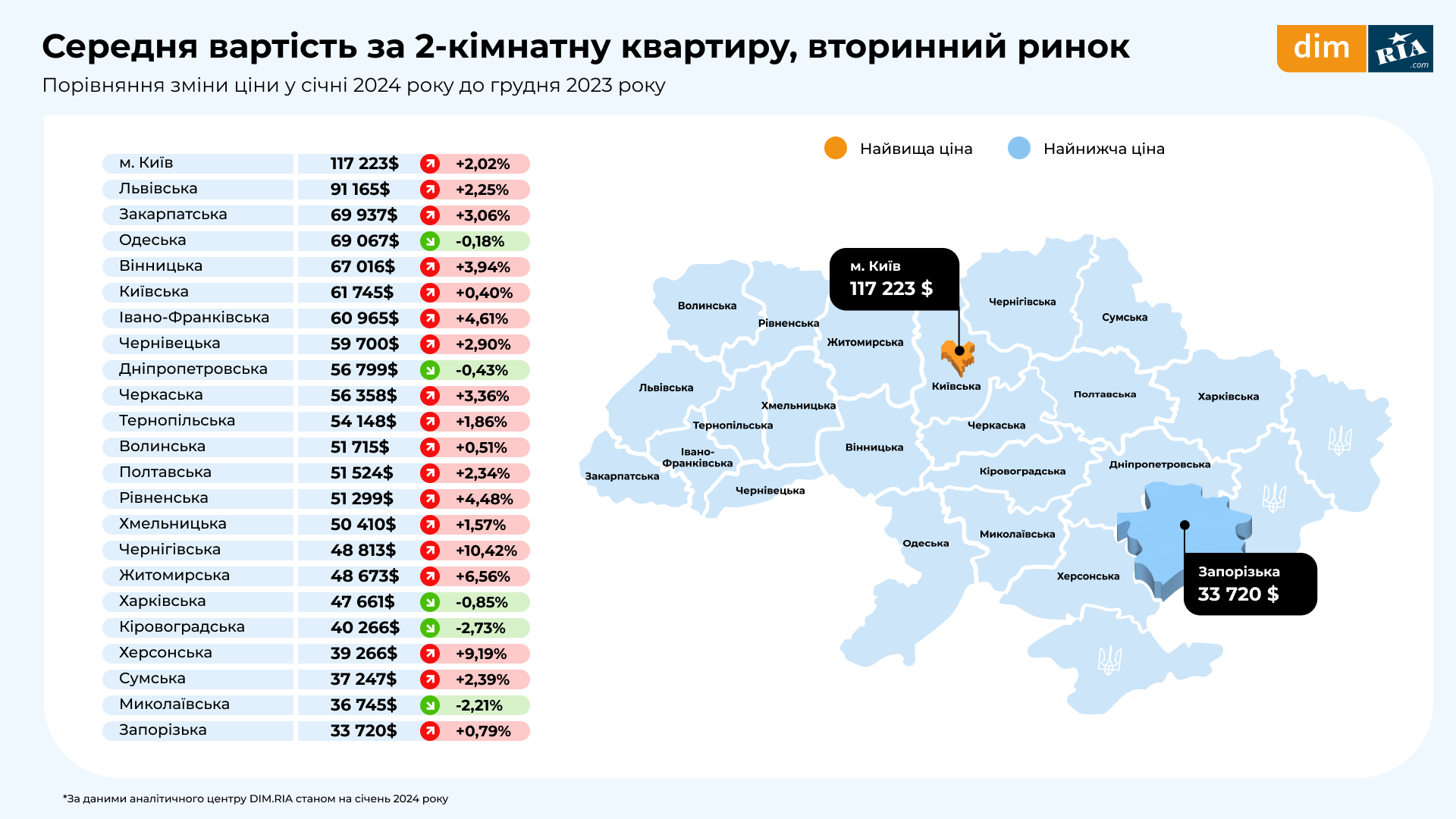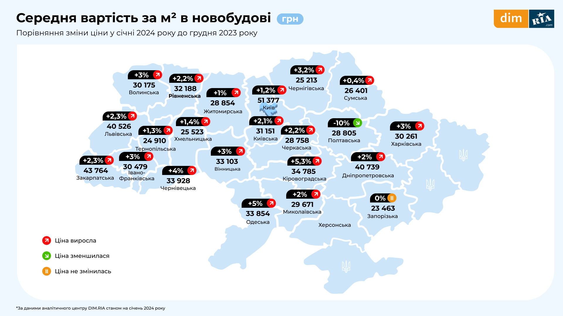 За январь на первичном рынке больше всего выросли цены в Кировоградской и Одесской областях – от +5 до +5,3%.
