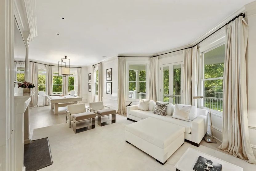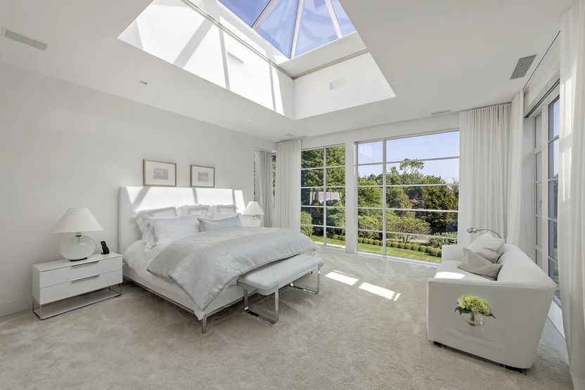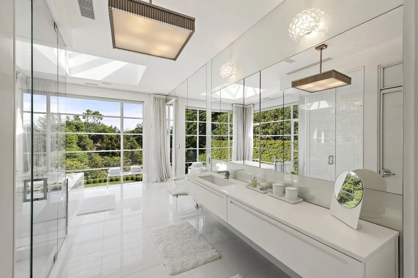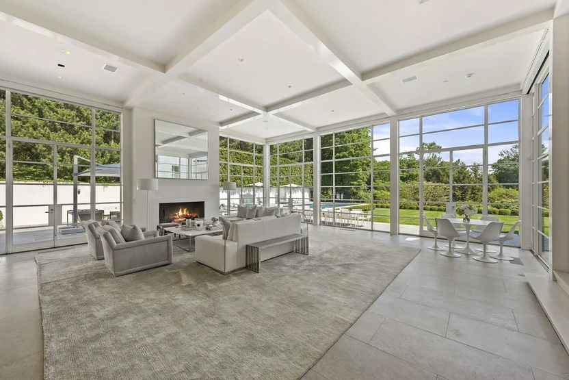 Четырехэтажный дом продают полностью меблированным. У него высокие потолки, стеклянные стены и лифт. Имение вмещает девять спален, а отдельный гостевой дом – еще два. На дворе есть бассейн, спа и зона отдыха.