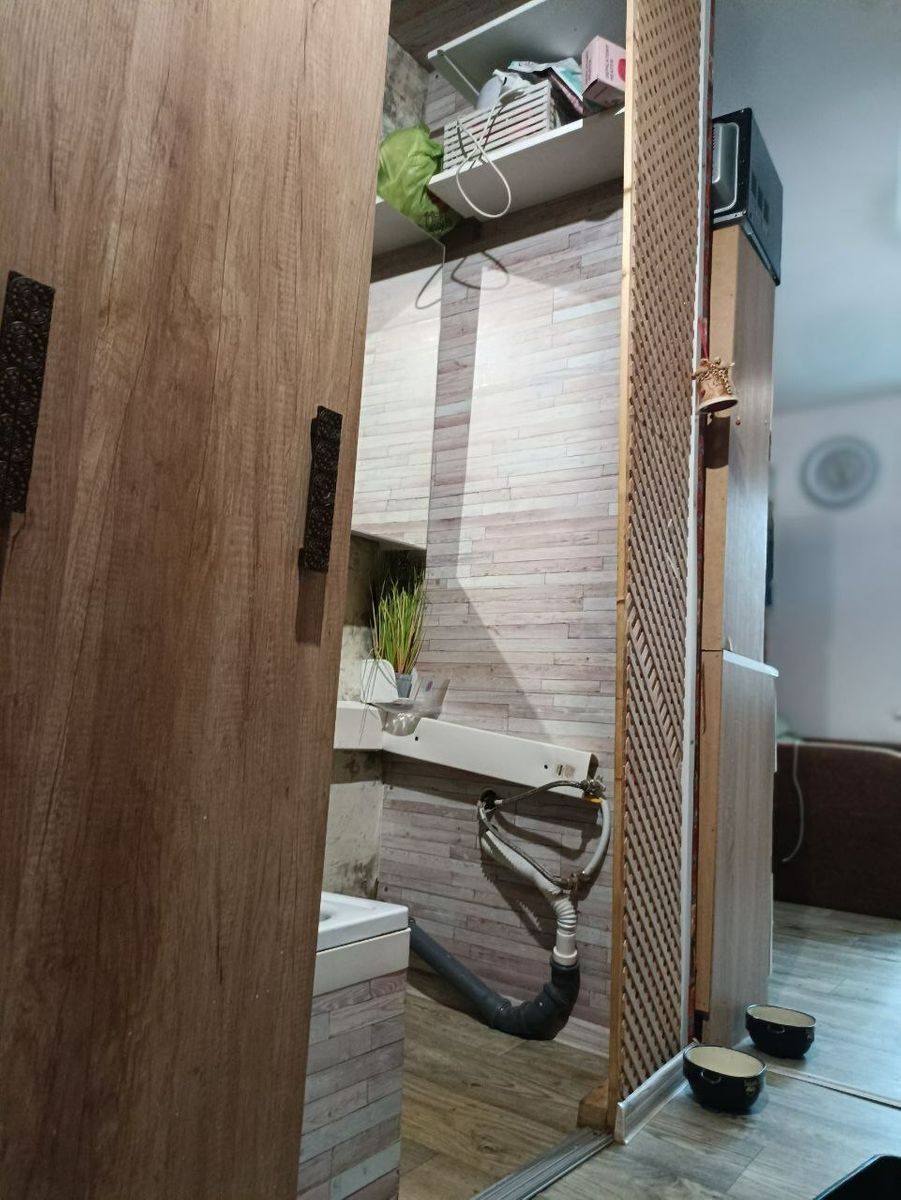 Несмотря на то, у квартиры есть существенные недостатки. Если с маленькой площадью можно смириться, то с отсутствием туалета и кухни – нет. Санузел является общим, и он расположен в коридоре. Общая кухня с газовой плитой обустроена отдельно на этаже.