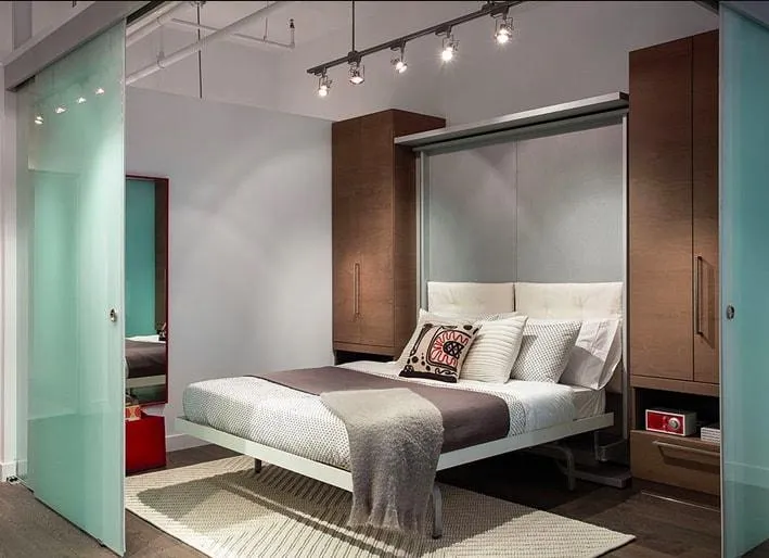 Большую и удобную кровать можно спрятать в шкафу. Кровать-трансформер – отличное решение для небольших помещений. Днем в интерьере вы видите шкаф, а ночью он превращается в кровать.