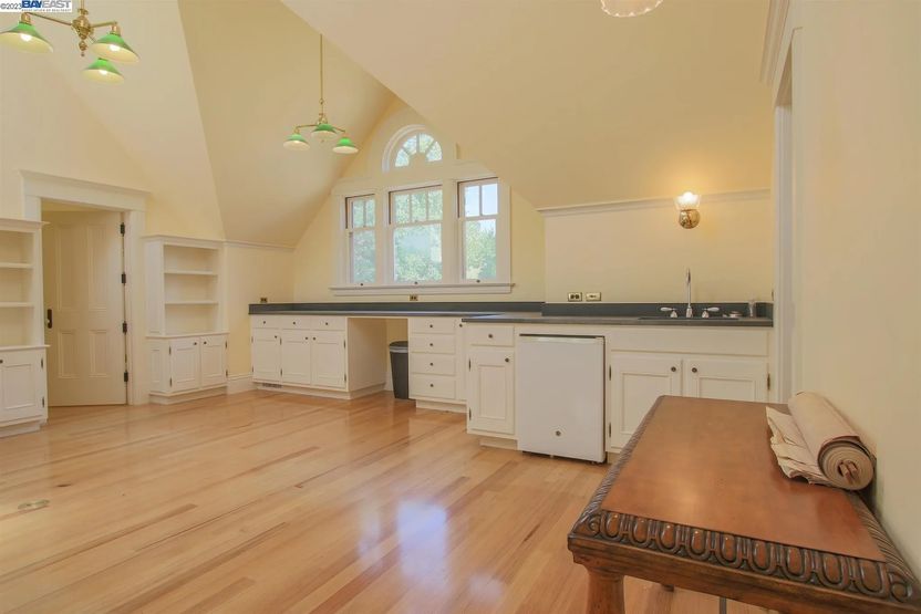 В доме есть четыре спальни, ванная комната, просторная кухня, уединенный обеденный уголок и библиотека. Интерьер создает очень теплую атмосферу, потому что в нем значительно преобладают тёплые молочные, желтоватые и коричневые оттенки.