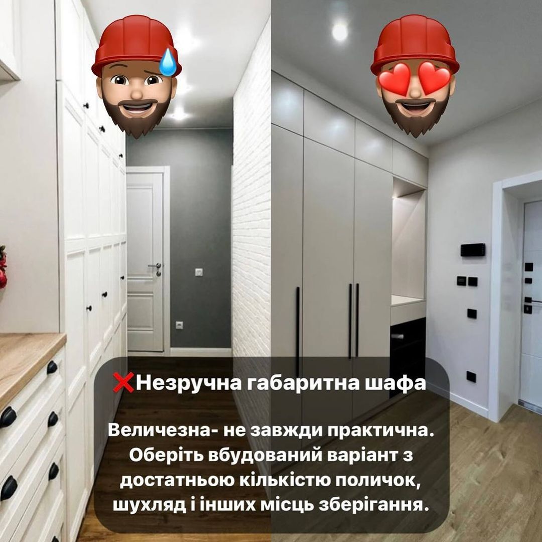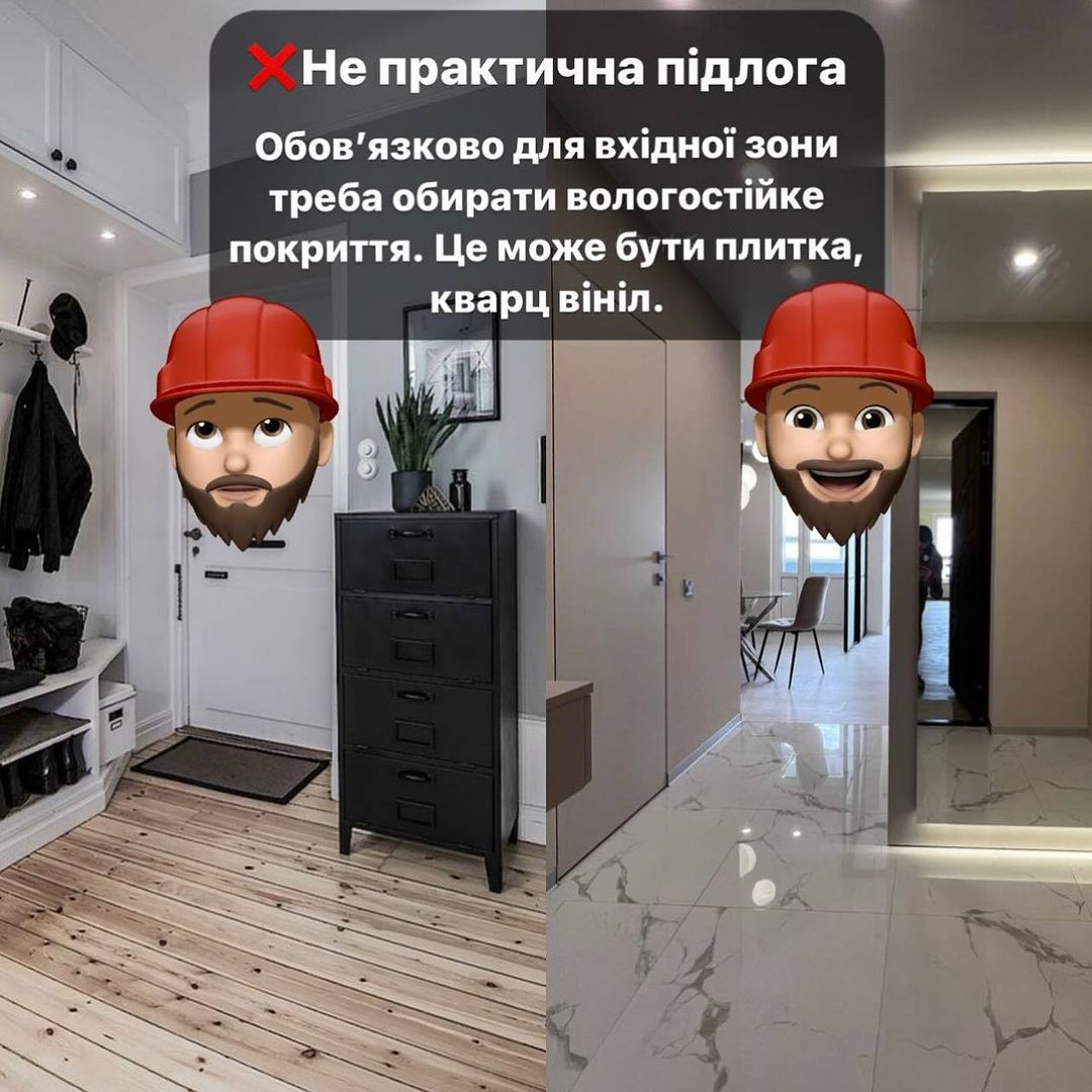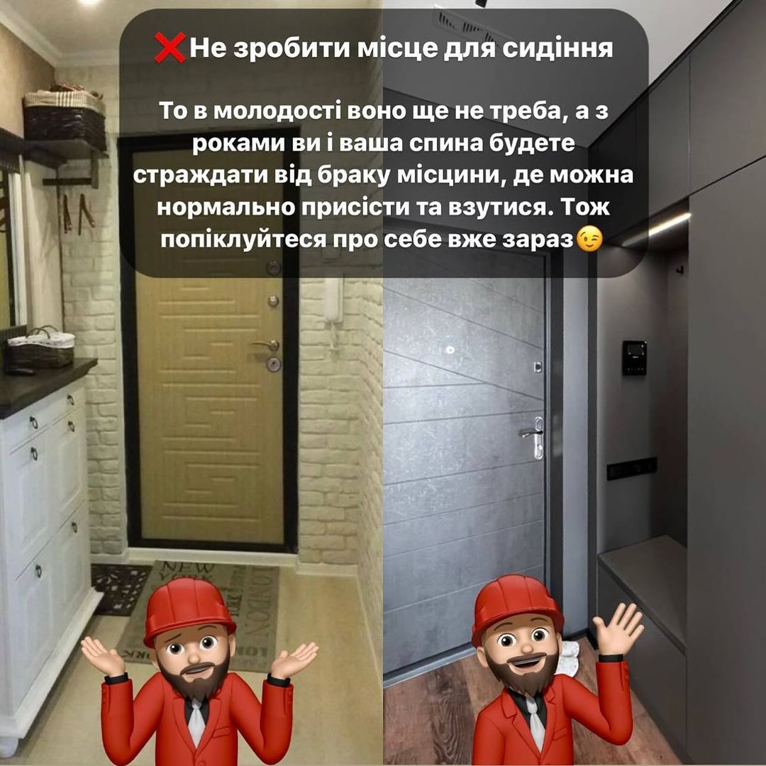 Среди других ошибок строитель называет непрактичный пол, отсутствие зеркала, полки для обуви и места для сидения, плохое освещение. Листайте карусель, чтобы понять причину и узнать несколько ценных советов.