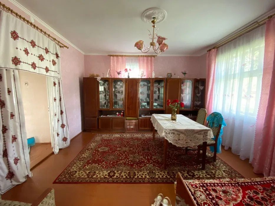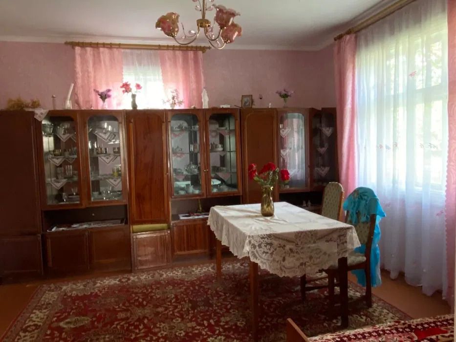 Хотя ремонт в доме делали очень давно, но он сохранился в хорошем состоянии. Старые серванты, ковры, шторы и вышитые полотенца на дверях создают особенно уютную атмосферу. Интерьер точно оценят люди, которые любят стиль сельских домов, что ассоциируется со спокойствием и теплом.