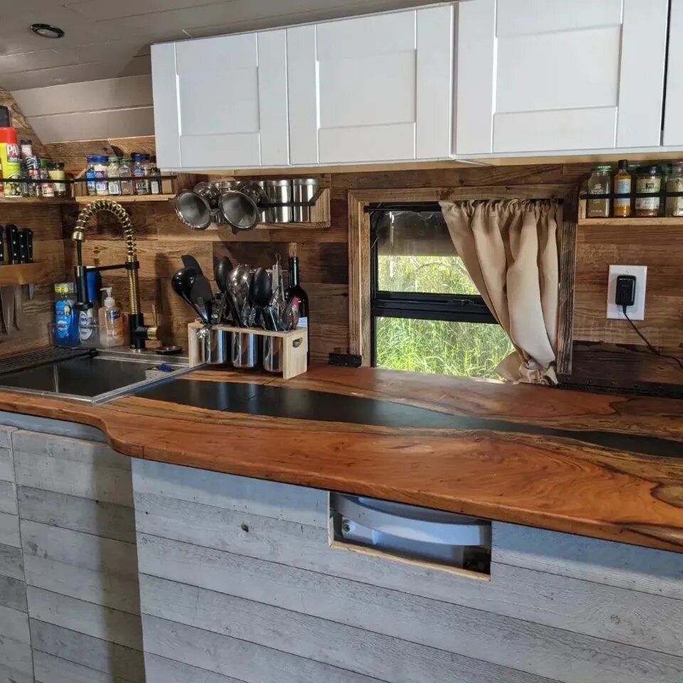 Элис вместе со своим партнером переехала в школьный автобус в 2022 году. С тех пор паре удалось отремонтировать его и переоборудовать в жилье.