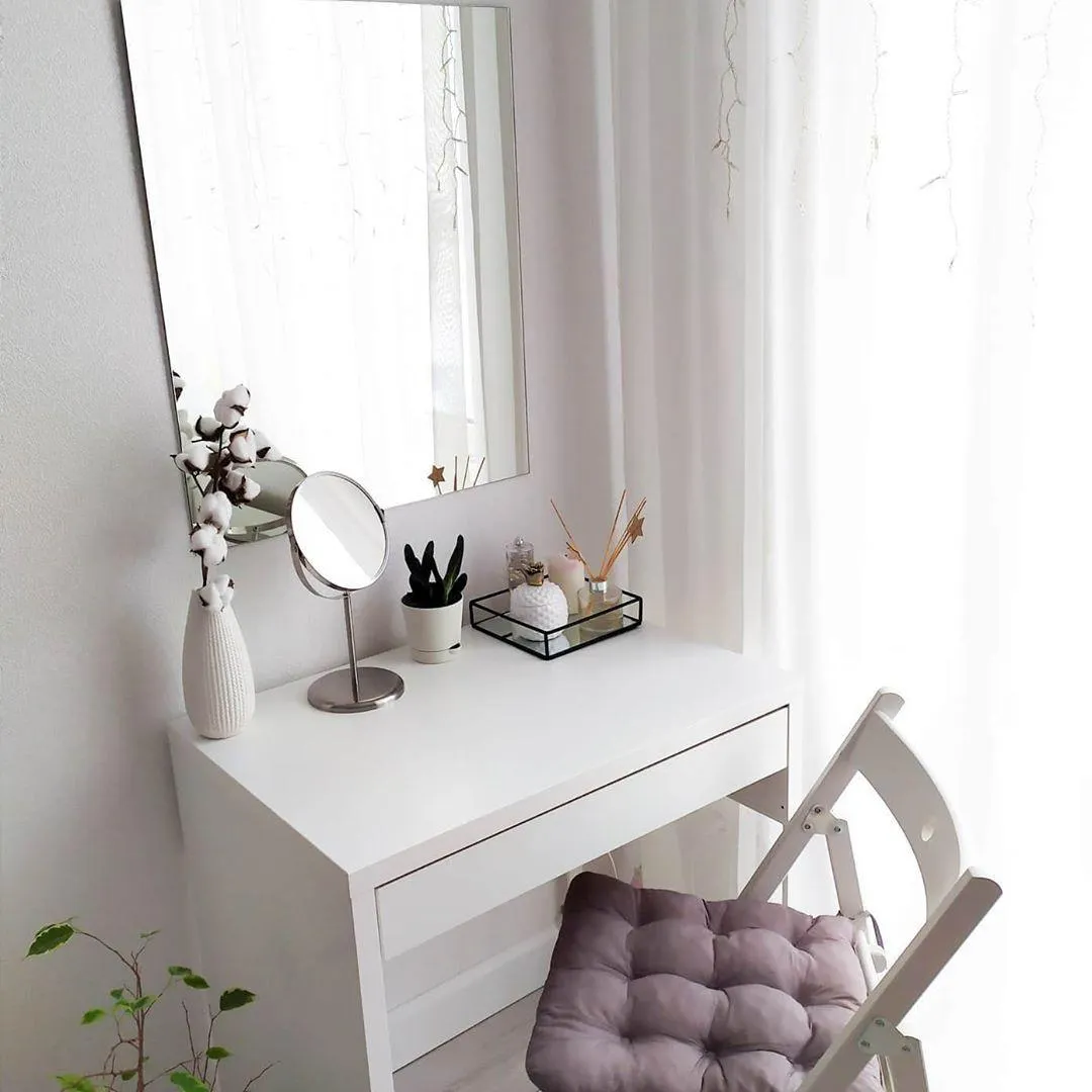Размер столика зависит от личных предпочтений и целей. Если на нем будет стоять только косметика, то глубины 40 см и длины 80 см будет достаточно. Если же вы планируете поставить на него ноутбук и поработать, глубина должна быть 50 – 60 см.