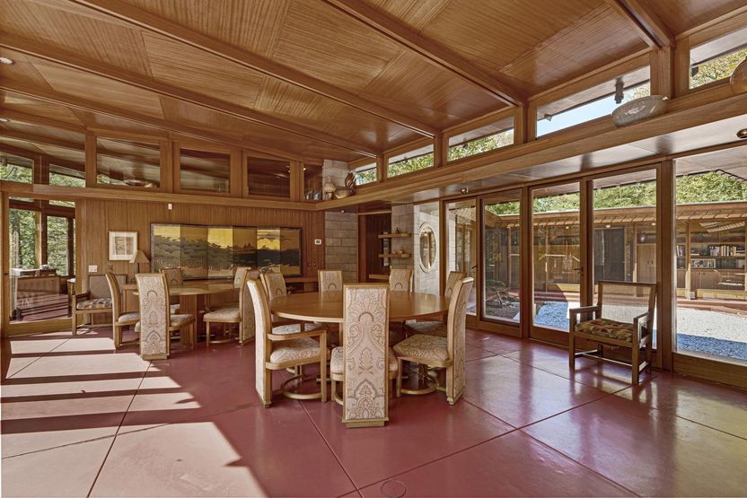 Архитектор спроектировал этот дом, как и большинство других, в стиле усония, который сам и создал. "Усоновские дома" – это обычно небольшие одноэтажные дома без гаража или складских помещений. Они часто имеют L-образную форму, плоские крыши, большие окна и теплый пол. В дизайне из материалов преобладает красное дерево.