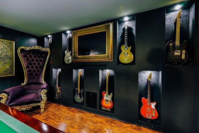 Дом площадью 530 квадратных метров не зря такой музыкальный – он принадлежит певице и записчику аудиокниг и ее мужу-продюсеру. Попасть в их секретную студию могут не все, ведь, во-первых, нужно знать, где расположена тайная дверь, а, во-вторых, понять, как она открывается. А для этого есть специальная кнопка.
