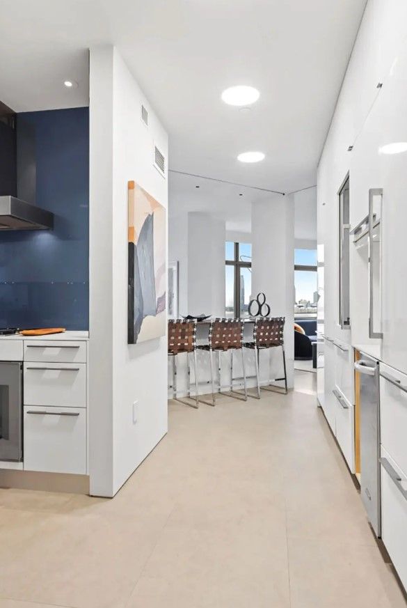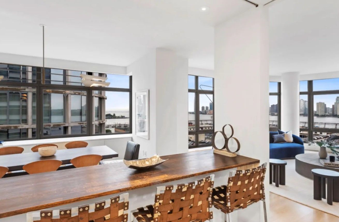 На площади 227 квадратных метров обустроена просторная гостиная с панорамными окнами, откуда открывается вид на Гудзон, столовую с прилегающей библиотекой и V-образную кухню. Среди частных помещений – 3 спальни, столько же ванных комнат и 1 дополнительный санузел. Кроме того, в доме много места для хранения вещей.