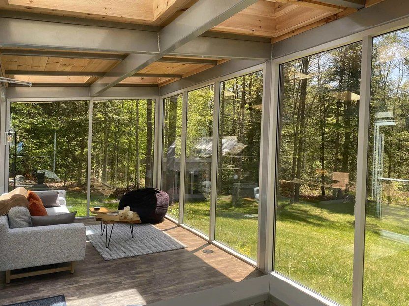 Это уютное жилье с двумя спальнями расположено в лесу, которое продают за 689 тысяч долларов. Авторы дизайн-проекта, очевидно, хотели по максимуму использовать это преимущество.