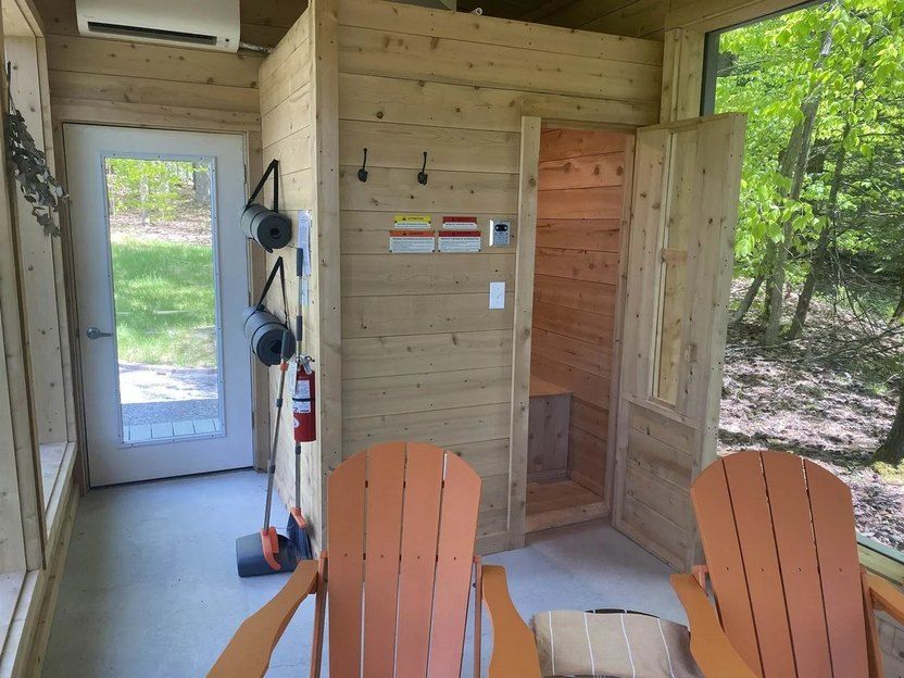Также к собственности принадлежит зона отдыха на улице и сауна, а еще – душ под открытым небом.