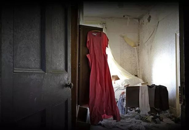 Фото последней владелицы Эллен в этом же красном платье висит на стене с выцветшими цветочными обоями 1950-х годов. На полу лежат любовные письма и записки от друзей. У камина стоят семейные снимки: черно-белые изображения давно умерших людей, покрыты пылью. В бывшей спальне Эллен также живут воспоминания о былых временах, поскольку ее столик завален остатками косметики и кисточками.
