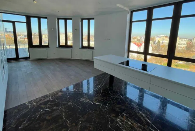 Дворівнева квартира, площею 450 квадратних метрів, включає власну терасу, ліфт з підземного паркінгу, 2 гаражі з дистанційним пультом.