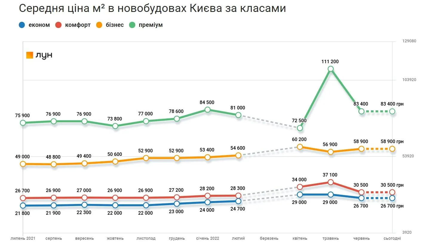 Поточні продажі значно менші за довоєнні. За твердженнями забудовників, зараз формується відкладений попит. Інвестори придивляються до новобудов, але не готові вкладати так активно, як до війни, через непередбачуваність майбутнього,