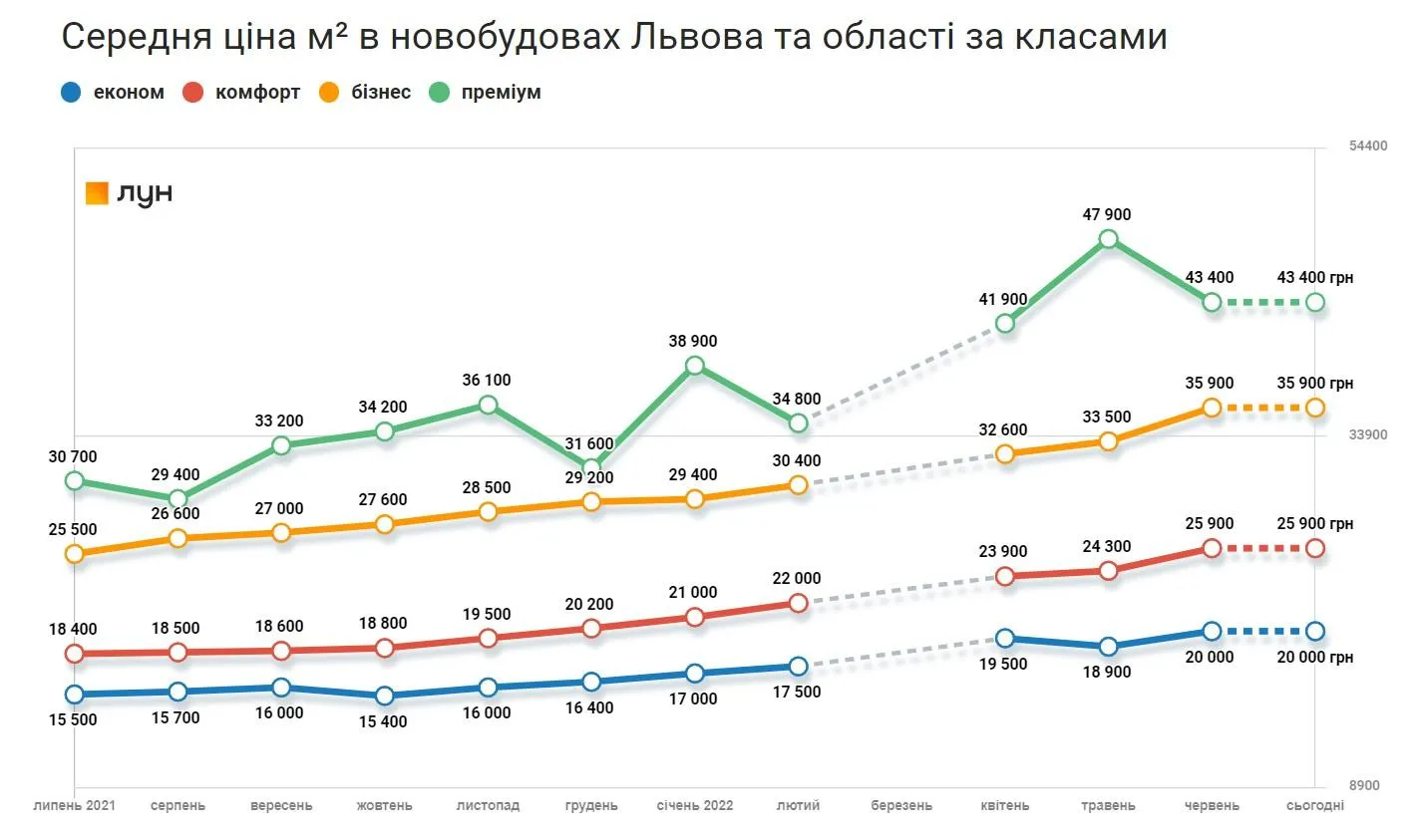 Ціна квадратного метра у новобудовах Львова / Інфографіка ЛУН
