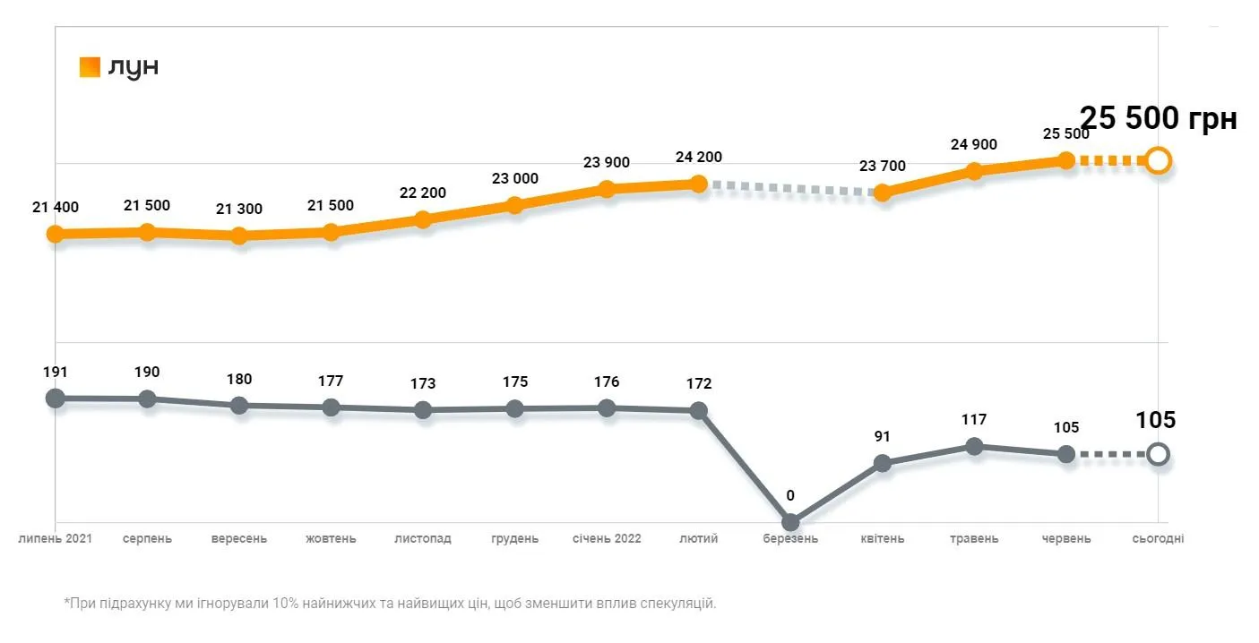 Такі дані наводять аналітики компанії ЛУН. Оновлену статистику цін портал опублікував 1 липня.