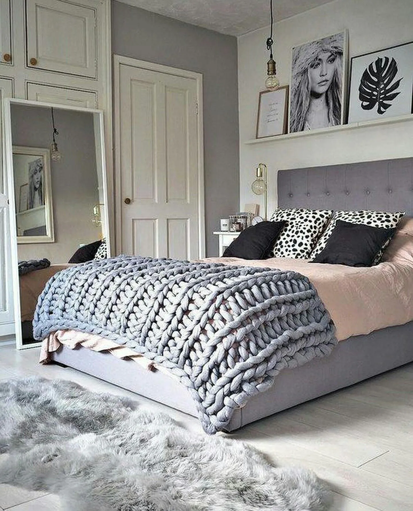 Поєднання сірий + рожевий – універсальне, воно підійде для будь-якої спальні / Фото pinterest