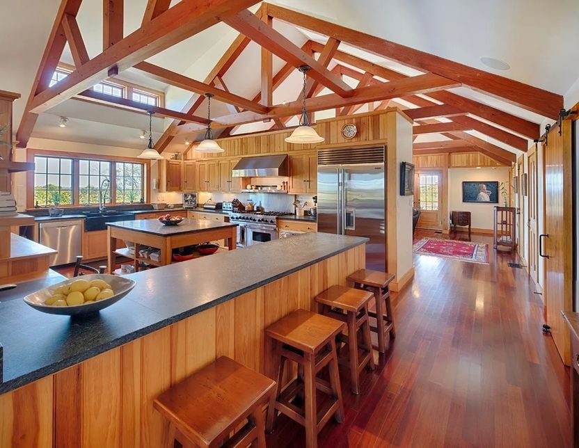 Житло площею 350 квадратних метрів вміщує п'ять спалень. У місті Чилмарк, де розташований будинок, спокійна місцевість та є приватний доступ до більш ніж 3 кілометрів піщаних пляжів.