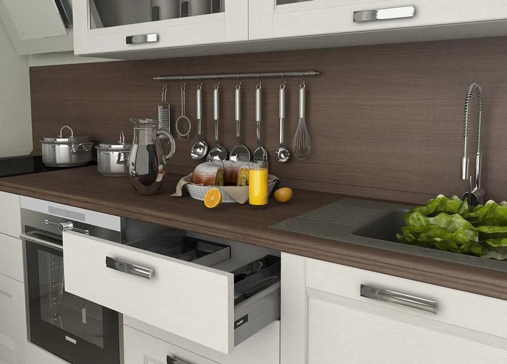 Заміна стільниці – рішення, яке дозволяє зробити новий акцент в кухні. Наприклад, якщо вона була під мармур, можна вибрати інший варіант – під дерево. Нова стільниця з ЛДСП обійдеться недорого, встановити її можна самостійно, а ось приміщення Зміниться повністю.